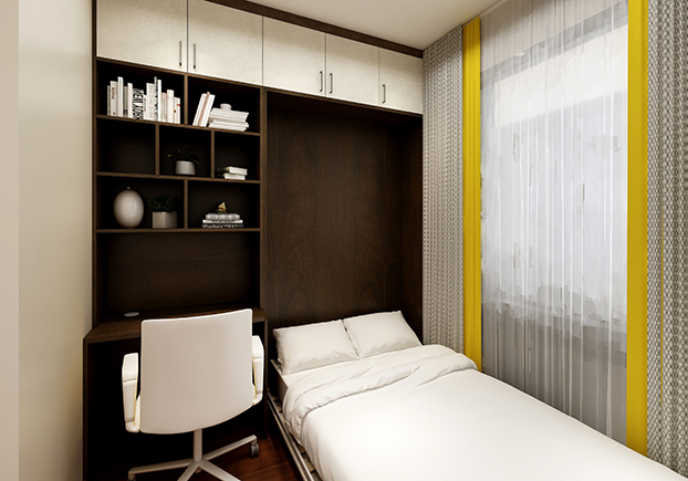 ▲該空間較小,一眼望去可以發(fā)現(xiàn)該空間既能當(dāng)書房,又能儲物,又可以是一個人的私人空間,家里臨時有客人來還能是一個簡易的單人床,何樂而不為?