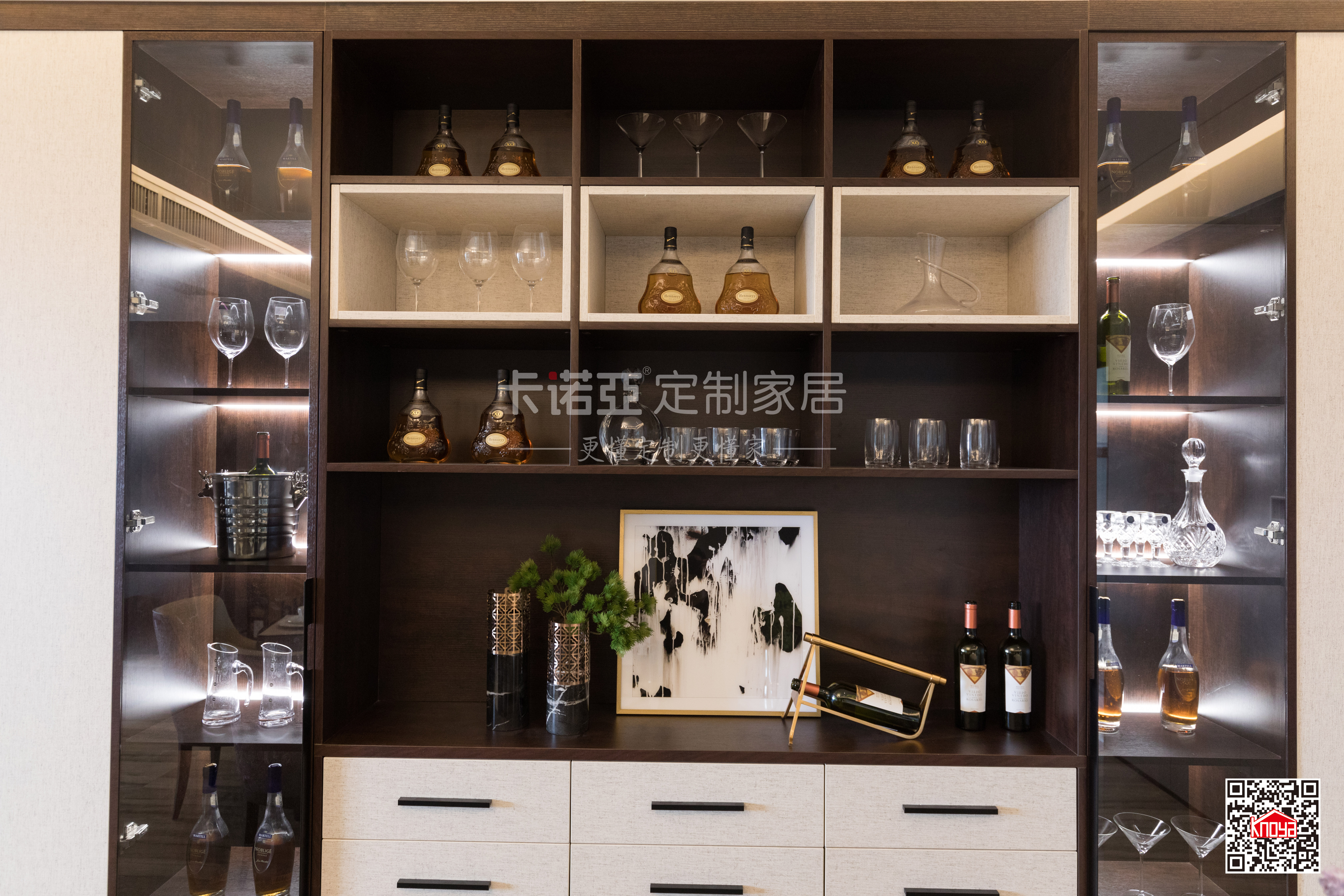 黑柜身板材,質(zhì)地通透,觸感細膩,為空間增加一絲典雅輕奢氣息。