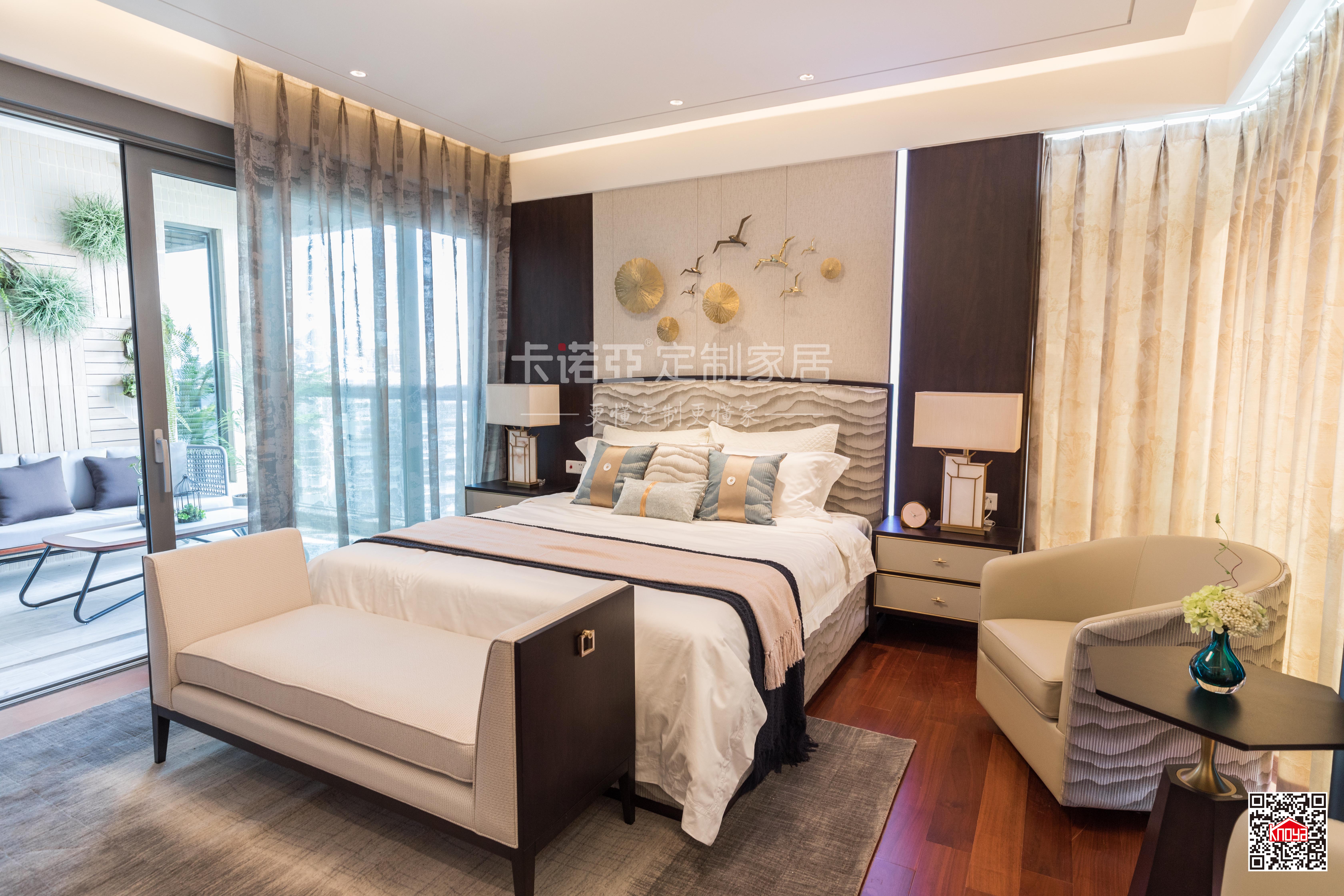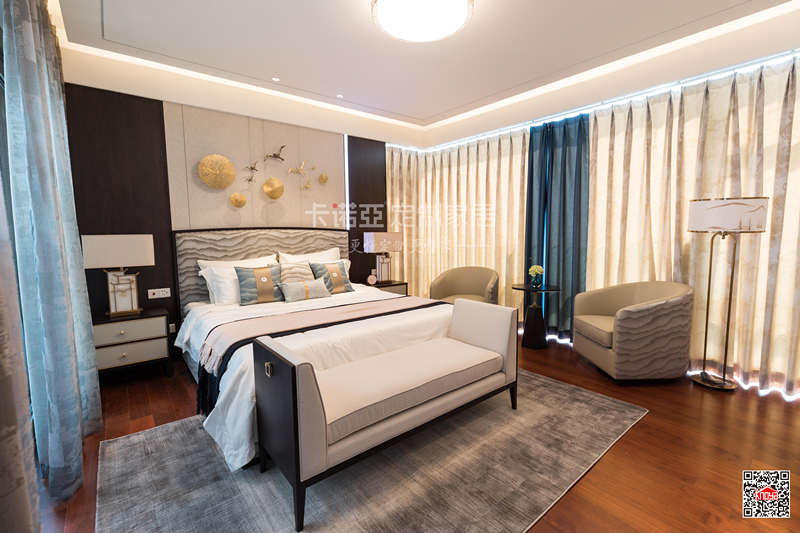 雖然主調(diào)是簡約風,但是臥房整體自帶奢華感。