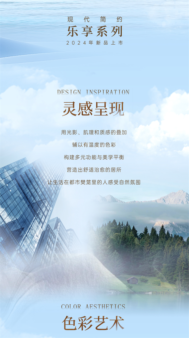 2024年新品系列,樂享 |現(xiàn)代簡約風格 用光影、肌理和質(zhì)感的疊加,輔以有溫度的色彩,構(gòu)建多元功能與美學平衡,營造出舒適治愈的居所,讓生活在都市樊籠里的人感受自然氛圍