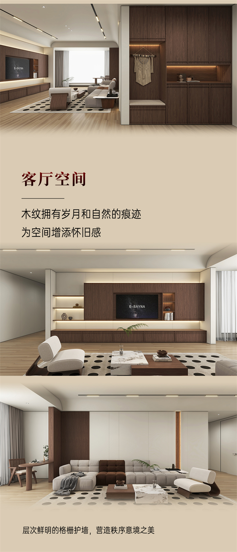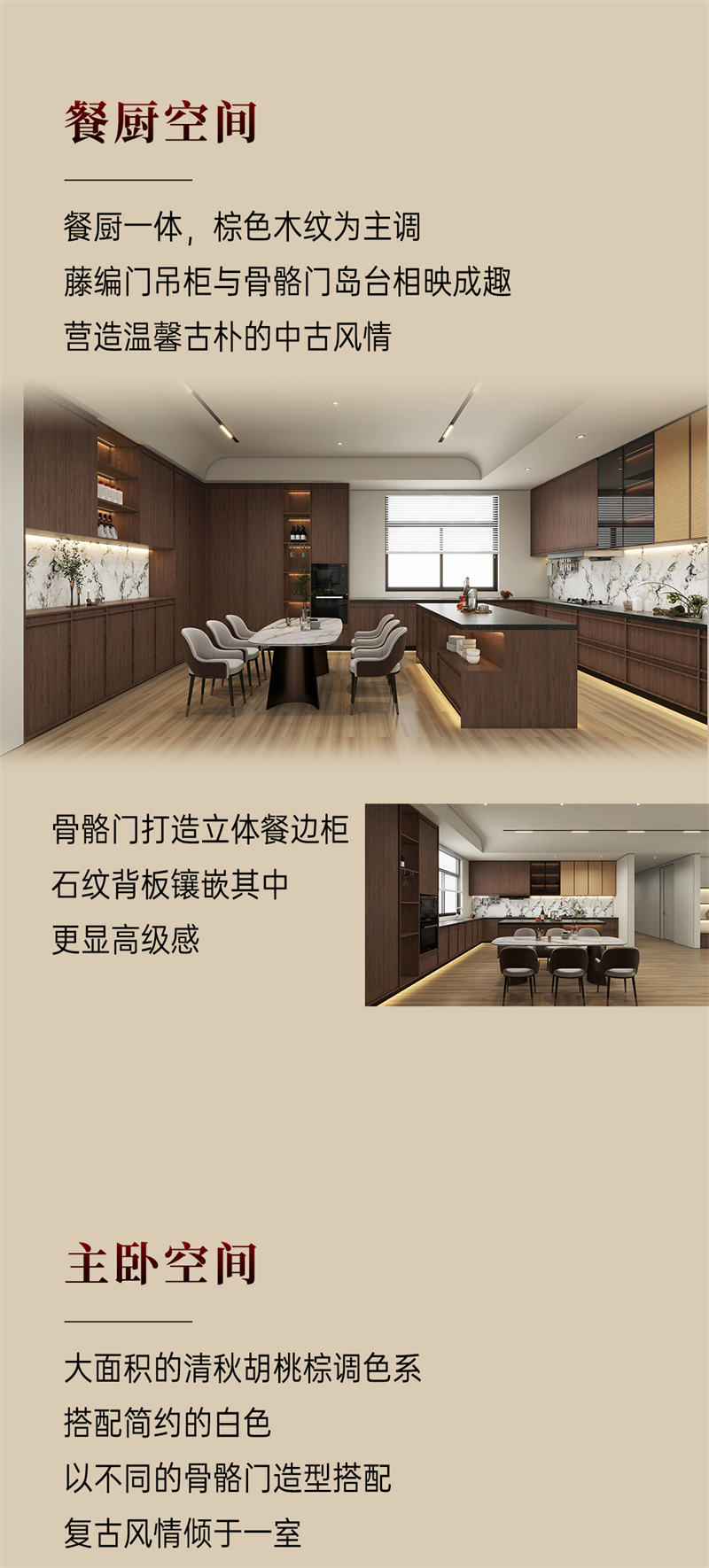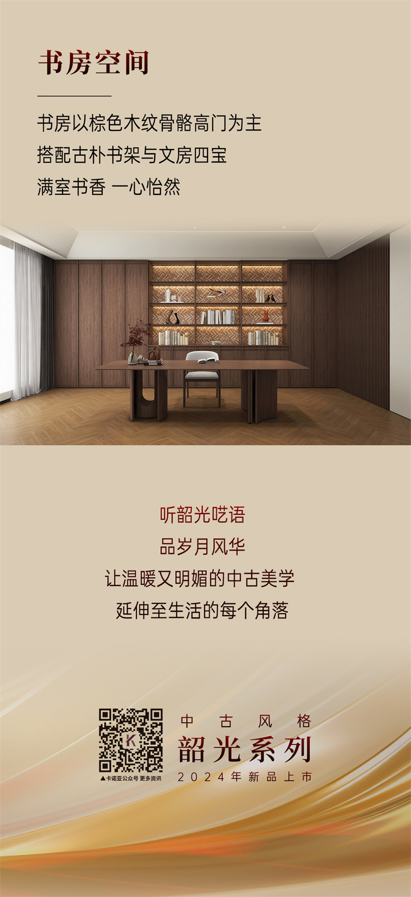 2024年新品系列,韶光 |中古風(fēng)棕色胡桃木紋為主色調(diào),搭配白色暗紋,細膩的藤編門與硬朗的骨骼門讓人聯(lián)想到古老的家具,充滿了歲月的痕跡。木紋的邊框+細密的藤編,自帶復(fù)古朦朧美感;拼樞門和藤門結(jié)合運用,使整個空間透氣感強,并擁有獨特舒適的慵懶氛圍。