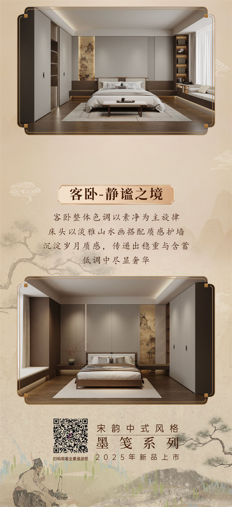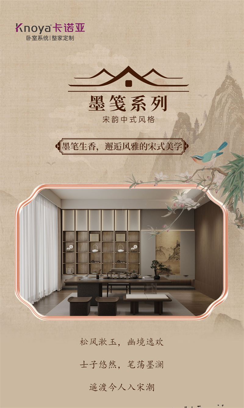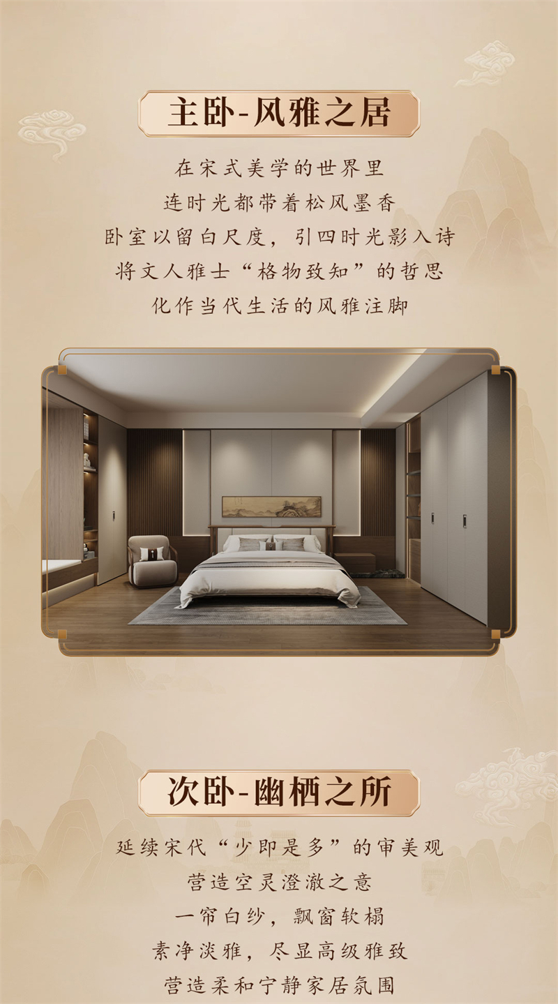 2025年新品系列,墨箋系列 |宋韻中式風(fēng)格宋氏美學(xué)源于中國(guó)宋代(960-1279年)的文化與藝術(shù)精神,以“極簡(jiǎn)、雅致、自然、內(nèi)斂”為核心,強(qiáng)調(diào)人與空間的和諧共生。其裝修風(fēng)格融合了宋代文人追求的禪意、詩意與哲學(xué)思想,注重材質(zhì)的天然感、色彩的柔和性以及布局的留白意境,被譽(yù)為“東方極簡(jiǎn)主義的源頭”。