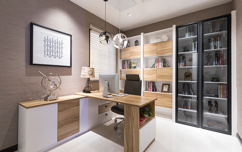 造型極簡(jiǎn),沒(méi)有任何形式的贅加,意境也恰到好處。書(shū)柜開(kāi)放式與封閉式兼有的設(shè)計(jì),兼顧收納與展示的雙重功能。書(shū)桌下方巧設(shè)側(cè)面置物格,有效增加空間利用率。
