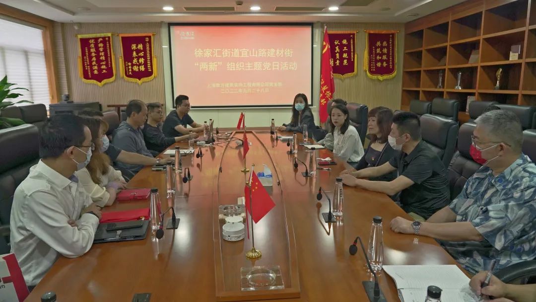 為促進黨組織間學習交流、互鑒互進,9月28日上午,徐家匯街道宜山路建材街“兩新”組織召開主題黨日活動。上海維方建筑裝飾工程有限公司黨支部、上海喜盈門建材有限公司黨支部、上海上房裝潢總匯有限公司黨支部、宜山路建材街聯合黨支部代表參與活動,本次活動會議由維方公司黨支部書記花良好同志主持。