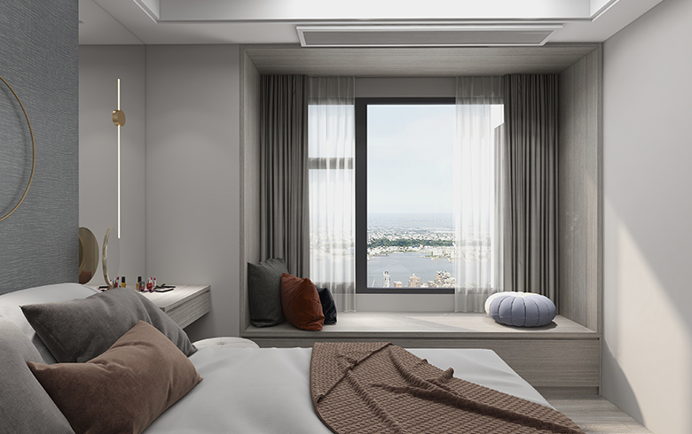 本案的簡約現(xiàn)代風(fēng)格,擯棄所有的繁瑣,加上一些幾何圖形元素,以簡為主,將舒適清雅的氛圍裝進(jìn)簡潔利落的空間。打造出一個通透明凈、清新雅致的現(xiàn)代空間。整個空間以暖色為基調(diào),讓人倍感舒適溫馨,搭配淺色沙發(fā),在定制家居中搭配黑框玻璃門及玻璃層板燈,在良好的采光下營造出透亮潔凈的視覺感受。而在空間處理上,采用開放式處理,減少空間壓抑感,同時加以深色大理石紋板材作為細(xì)致的點(diǎn)綴,賦予空間一抹藝術(shù)氣息。