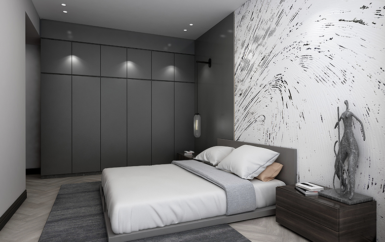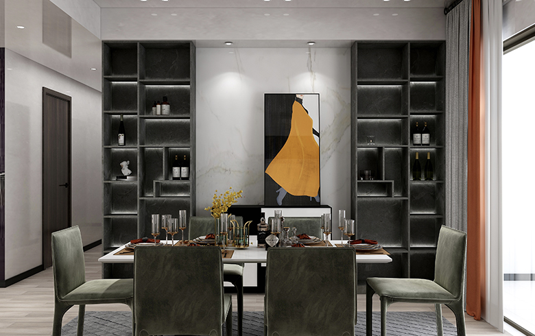 本案為碧桂園·天薈265平大平層的現(xiàn)代極簡風格案例。現(xiàn)代派的極簡主義在滿足功能的基礎上,不斷的做減法, 反對形式化和裝飾化,拋棄不必要的細節(jié)而強調(diào)物體本身的美,主張功能化和理性化的設計理念,加上對材料和色彩的考究、運用,在設計師的偏執(zhí)喜好里,掀起對“黑的溺愛”的藝術思潮。