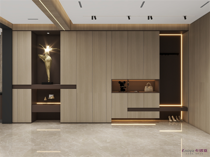 意式極簡既具有意大利文藝復(fù)興時期的意蘊(yùn),奢華高貴,同時又兼具現(xiàn)代感的干練高級,深棕色的木飾面搭配原木色穿插營造的高級感貫穿整個空間,利用材質(zhì)的對比與反差加強(qiáng)空間的質(zhì)感感受。優(yōu)雅與深邃的配色讓空間散發(fā)出靜謐感,簡約的線條在訴說永恒的經(jīng)典,脫離一切的浮華與煩躁。身居清雅地,心無車馬喧,從生活的本質(zhì)出發(fā),讓它靜下來,感受快節(jié)奏都市生活背后的安靜與寧靜。