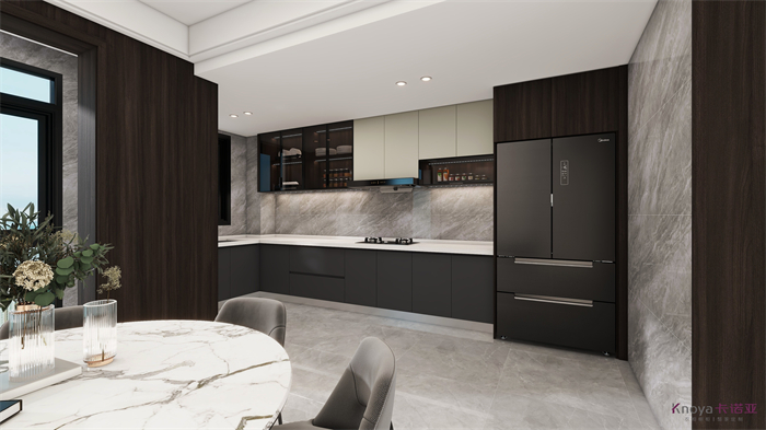 設計方案是一個意式簡約風的大平層,門板材料主要是以水性漆為主,客廳空間因為改造后跨度比較大,光線比較好,所以我們采用部分深色的墻面來搭配淺灰色的地板,讓空間大氣不失沉穩(wěn)。設計理念:設計源于生活,生活因設計而改變,讓設計物有所值,讓細節(jié)締造完美!整家視界 全案生活|第六屆卡諾亞整家設計精英聯賽