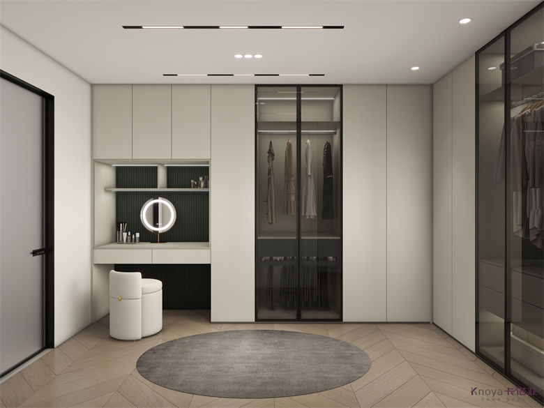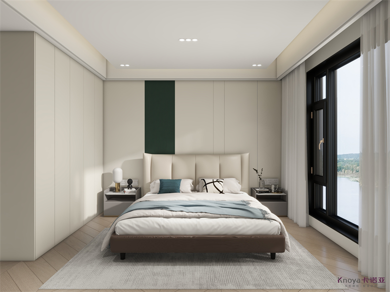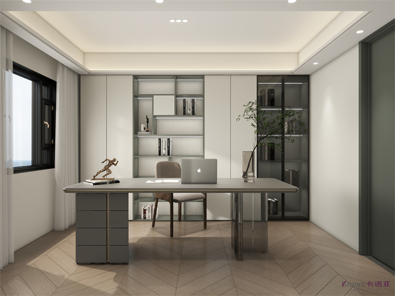 作品介紹:空間以簡潔明快的淺色為主,無主燈的設(shè)計,極簡中又不失淡雅,呈現(xiàn)明亮干凈的美,再用小面積輔以明亮的色彩,凸顯出空間層次??蛷d的亮點在于電視背景墻,底下鏤空的設(shè)計比較少見,電視背景墻后面便是休閑區(qū),收納柜和鞋柜銜接形成一個整體。餐邊柜和入戶玄關(guān)銜接,入門即是風(fēng)景。開放式廚房和餐廳,讓空間看上去更加寬敞。主臥青綠色點綴,增加層次,衣帽間梳妝臺一體,L型衣帽間將空間分成兩塊,避免了衛(wèi)生間對著床的現(xiàn)象。次臥陽臺休閑區(qū),有著一整面的收納柜,可以看書,也可以娛樂。床背景上下分段,加上燈帶增添氛圍感。書房鏤空玻璃門木門虛實結(jié)合。