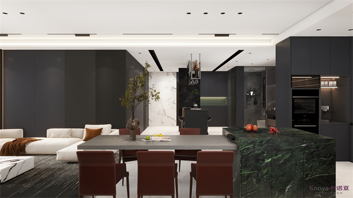 作品簡(jiǎn)介:整體以現(xiàn)代為主,入戶區(qū)域和酒水吧區(qū)域做環(huán)繞型設(shè)計(jì),整體更通透空間,客廳背景墻運(yùn)用了疊級(jí)的手法弱化承重柱,沙發(fā)背景同樣采用疊級(jí)做到呼應(yīng)的設(shè)計(jì),主臥拆除隔壁臥室做主臥步入式衣帽間,增加了主臥的靈動(dòng)以及空間,兒童房采用類似榻榻米手法設(shè)計(jì),整體做收納儲(chǔ)物學(xué)習(xí)娛樂空間,廚房做開放式廚房,整體色系為黑灰,天花吊頂采用無主燈加智能燈光,整體空間和氛圍舒適度拉滿。