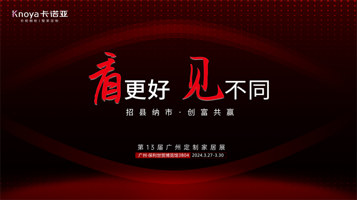 2024年3月27日-30日,第13屆中國(guó)廣州定制家居展覽會(huì),將在廣州保利世貿(mào)博覽館舉行。存量房時(shí)代,下游家居業(yè)處于變革發(fā)展周期,市場(chǎng)分級(jí)、用戶(hù)分層,越來(lái)越多企業(yè)通過(guò)創(chuàng)新尋求業(yè)績(jī)新增長(zhǎng)點(diǎn),定制家居業(yè)迎來(lái)新一輪高質(zhì)量發(fā)展變革浪潮。專(zhuān)注定制家居23年的卡諾亞,將攜1121戰(zhàn)略、2大新品強(qiáng)勢(shì)亮相本屆展會(huì),助力加盟商打造差異化競(jìng)爭(zhēng)優(yōu)勢(shì)。屆時(shí)誠(chéng)邀各界精英蒞臨3B04展館,看更好的卡諾亞,見(jiàn)不同的大未來(lái),廠商攜手“招縣納市·創(chuàng)富共贏”。