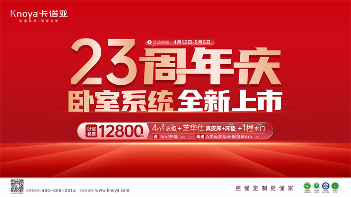 伴隨五一裝修黃金周臨近,恰逢卡諾亞23周年慶臥室系統(tǒng)盛大發(fā)布之際,為滿足消費(fèi)者的品質(zhì)消費(fèi)需求,卡諾亞五一盛惠風(fēng)暴于4月12日到5月5日強(qiáng)勢(shì)登陸全國(guó)各地專賣店,包含12800元臻選臥室套餐、11800元享在臥室套餐、10800元學(xué)在臥室套餐、28800元康醛整家套餐、8999元全屋配套家品套餐、舊櫥煥新套餐等,下定即享4大超值福利,帶來高質(zhì)價(jià)比的促銷盛宴,為不同消費(fèi)群輕松定制不一樣的專屬生活方式。