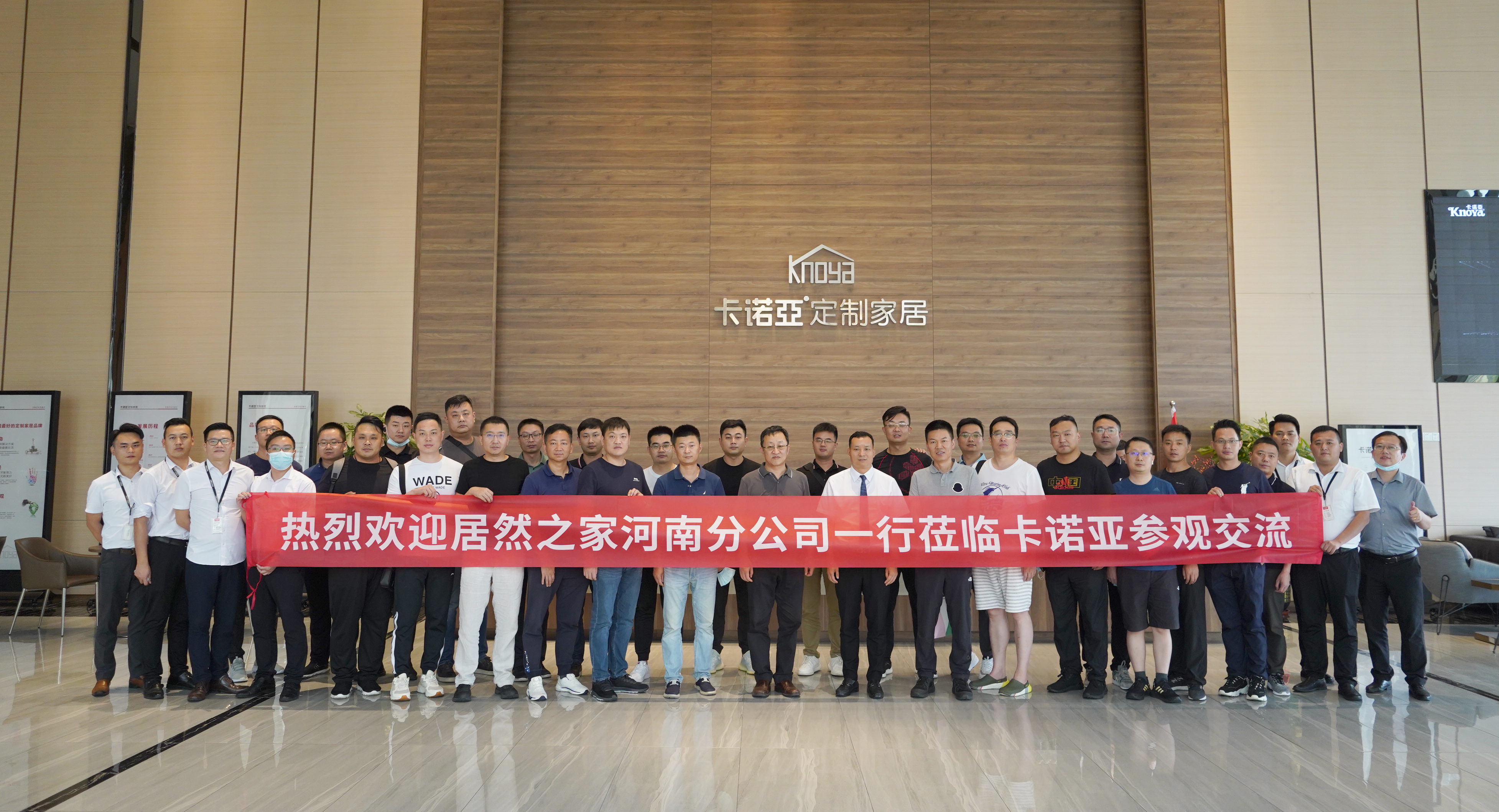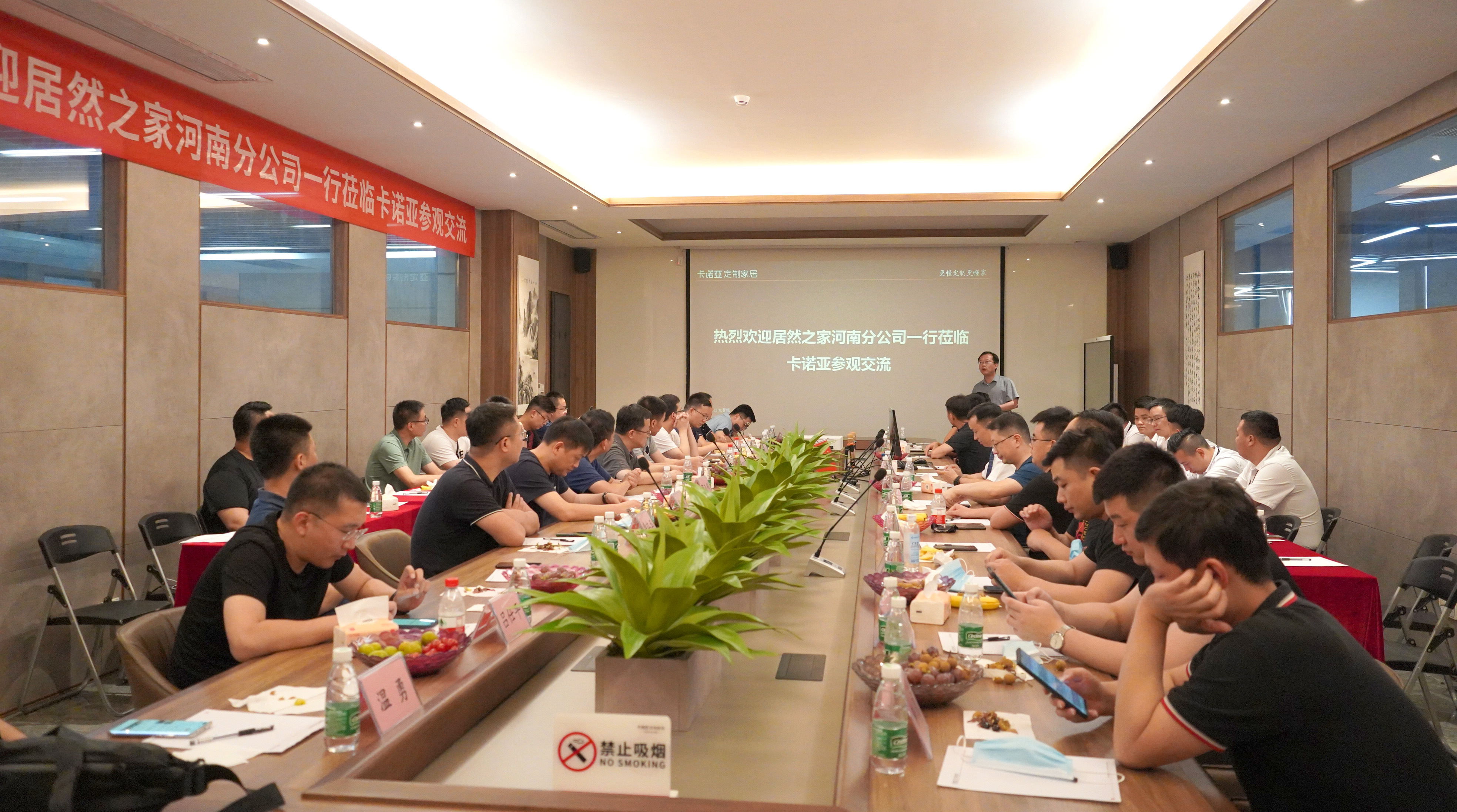 7月21日,居然之家河南分公司總經(jīng)理張健先生攜同河南各分店總經(jīng)理一行30多人,蒞臨卡諾亞定制家居清遠(yuǎn)工業(yè)4.0制造基地參觀考察交流??ㄖZ亞定制家居營(yíng)銷(xiāo)副總經(jīng)理李偉明等公司高層全程陪同,雙方就布局河南市場(chǎng)的合作事宜進(jìn)行深入的探討。