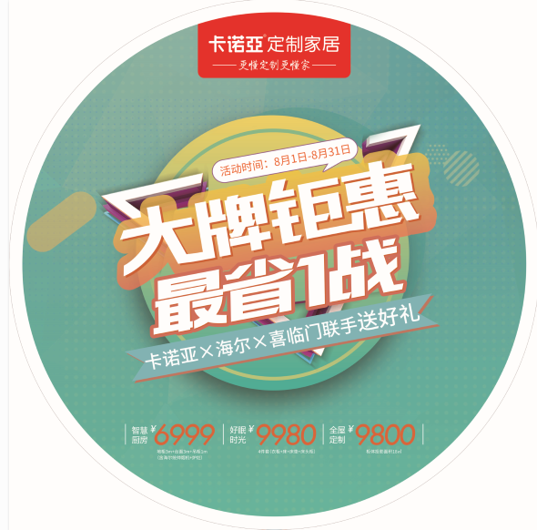 據(jù)了解,九月尚未到來,卡諾亞便搶先進(jìn)入作戰(zhàn)狀態(tài),策劃了針對(duì)剛需房裝修的“大牌鉅惠,最省1戰(zhàn)——卡諾亞×海爾×喜臨門聯(lián)手送好禮”全國優(yōu)惠活動(dòng)。8月1日-31日期間,卡諾亞牽頭各大戰(zhàn)略合作品牌,以定制家居帶動(dòng)家裝、家飾、家電的一站式讓利活動(dòng),滿足消費(fèi)者精裝修需求。