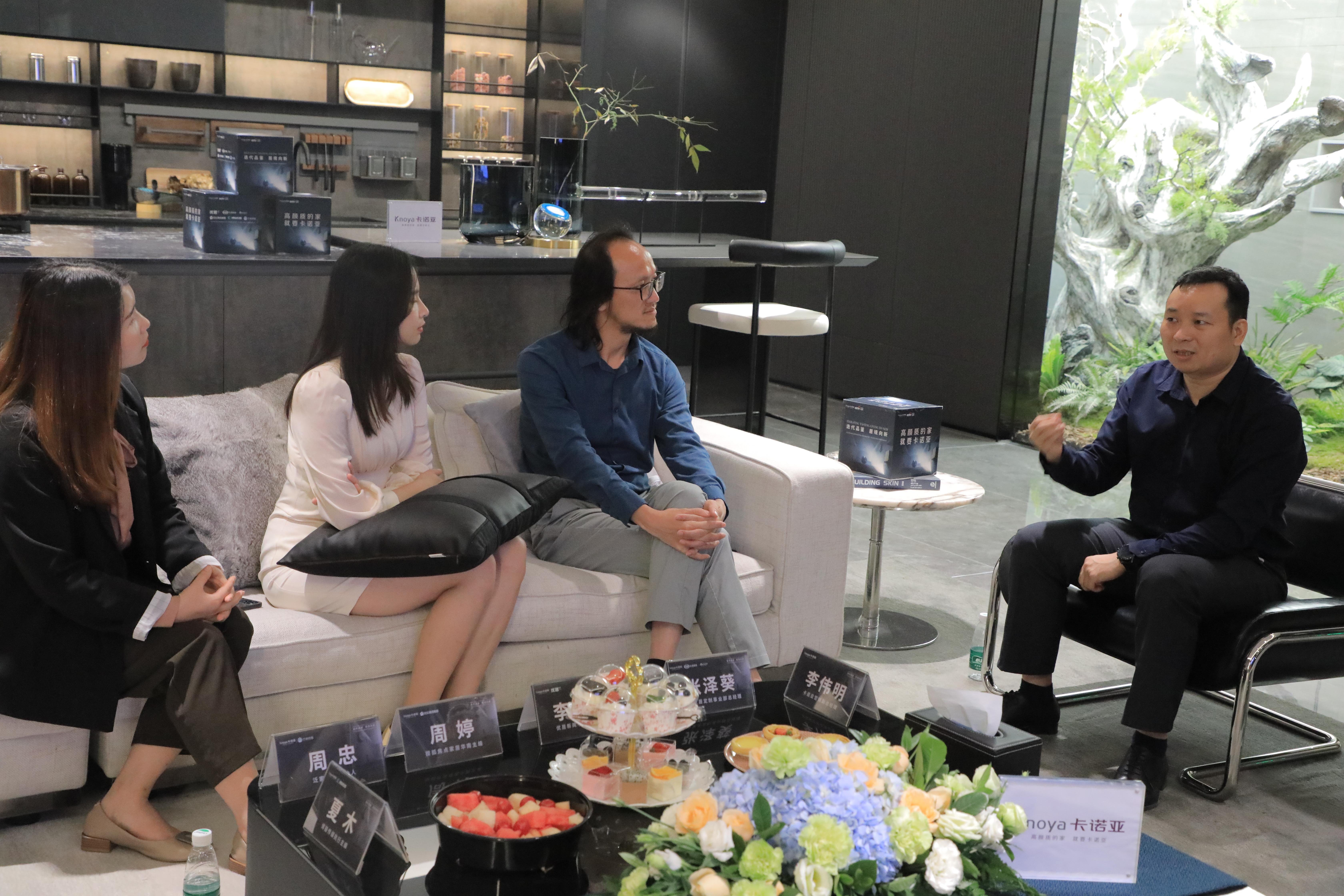 觀摩展廳結(jié)束后,5位媒體大咖與卡諾亞進(jìn)行了一場(chǎng)深度對(duì)話。在對(duì)話環(huán)節(jié)中,卡諾亞營(yíng)銷副總經(jīng)理李偉明詳細(xì)闡述了卡諾亞新LOGO誕生背后的故事,以及卡諾亞鎖定“衣柜櫥柜|整家定制”品牌戰(zhàn)略新定位的初衷和遠(yuǎn)見(jiàn)。